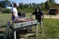 Im EG zwei Gruppenräume mit überdachter Terrasse. In einem kann die Gruppe essen und sich in der kleinen Küche selbst versorgen. Wer das nicht möchte, bucht einfach Halbpension oder ein Tagesgericht dazu. Der zweite Gruppenraum als Wohnzimmer. Außerdem Terrasse unter der Weinlaube.Getränke können über den Vermieter angeliefert werden. Die kleine Küche ist komplett ausgestattet mit 4-Flammen-Herd, Backofen und Spülmaschine; gr. Kühlschrank im Gruppenraum für Getränke. Grill auf der Terrasse. Wer ganz scharf aufs Budget schaut und trotzdem verpflegt werden möchte, bucht ein Tagesgericht (Salat und Tellergericht).