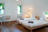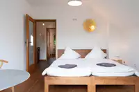 Im 1. Stock mit drei Doppelzimmern und einem Einzelzimmer ist für 7 Personen Platz zum Schlafen. Das Einzelzimmer kann nur durch eines der Doppelzimmer betreten werden. Im EG gibt es einen Schlafraum mit zwei bequemen Betten. Im Keller gibt es zwei weitere Betten (Zusatzbetten).