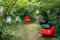 Wir haben das Gruppenhaus für ein langes Wochenende anläßlich unseres 20-jährigen Diplomtreffens gebucht und waren zu neunt. Wir haben trotz des nicht ganz so idealen Wetters ausgiebig die Terasse mit Blick in den wilden und verwunschenen Garten genutzt, und in der sehr gut ausgestatteten Küche eine riesige Gemüsepfanne gekocht. Der Bioladen war leider insolvent, aber auf dem fußläufigen kleinen Wochenmarkt haben wir alles bekommen, was wir brauchten. Es haben alle gut in den Betten geschlafen, und es gab genügend Platz, so dass keiner in den Keller ziehen musste. Aus dem Bereich der Kunst- und Kulturschaffenden kommend waren wir mit der kunstvollen Getaltung und Ausstattung natürlich bestens aufgehoben. Abends haben wir den Gruppenraum intensiv genutzt. Ganz herzlich war der Empfang und auch die Übergabe am Sonntag mit dem Betreuer des Gruppenhauses. Die Anbindung mit dem ÖPNV nach Darmstadt ist sehr gut, und wir empfehlen den Besuch des Vortex-Gartens auf der Mathildenhöhe und den Ausblick vom Hochzeitsturm. Einzig am Anfang hat es bei der Buchung des Gruppenhauses zunächst etwas gehakt, konnte dann aber per Email geklärt werden. Von daher von unserer Gruppe eine wärmste Empfehlung für alle, die eine Auszeit in einer wunderschönen Natur- und Kunstoase suchen.