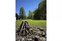 Außenbereich mit Grillmöglichkeit, Mobiliar, Tischtennisplatte, Spielgeräten, Feuerstelle