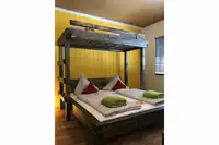 - 1 Zimmer mit Doppelbett, Hochbett und Schlafliege (4 Personen)