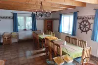 Es kann sowohl das gesamte blaue Haus FISCH (21) als auch das gesamte rote Haus BODDEN (15) jeweils separat angemietet werden oder beide Häuser zusammen (für sehr große Gruppen).