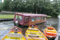 Elektroboote mit und ohne Skipper können gemietet werden - so kann man Giethoorn leicht vom Wasser aus erkunden.