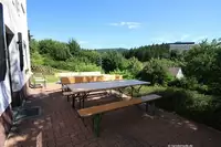 Ein großer Gemeinschaftsraum mit Sitzgelegenheiten sowie eine große Küche steht Ihnen zur Verfügung. Das Ferienhaus verfügt über zwei Balkone sowie eine große Terrasse mit Sitzgelegenheiten und Grillmöglichkeit. Der Garten steht Ihnen ebenfalls zur alleinigen Nutzung zur Verfügung.