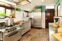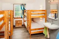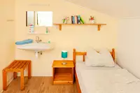 Zimmer: 15 Zimmer mit 45 Betten in Doppel- oder Mehrbettzimmern, die sich auf Erd- und Dachgeschoss verteilen Behindertengerecht Ein behindertengerechtes Bad befindet sich im EGKüche: 6-flammiger Gastronomieherd mit Backofen, Edelstahlspüle, Spülmaschine, zwei große Kühlschränke mit Gefrierfach, Kaffeemaschine, Wasserkocher, Mikrowelle, Koch- und Essgeschirr
