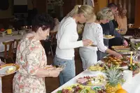 Die Umgebung ist top, ruhig und schön. Das Haus war leider nicht so schön. Zunächst haben wir es nicht mal gefunden. Der Außenbereich ist mit Holz volgestapelt, das man nicht mal nutzen durfte, nur gegen Bezahlung. Die Gruppenräume sind mit Stühlen und Tischen zugestellt. Irgendwo ist ein Loc im Boden, über den ein Eimer gestülpt wurde. Oben im Flur regnet es durch, auch dort stand ein Eimer, der das Regenwasser auffangen sollte. Besen und Staubsauger, zum zwischendrin sauber machen, mussten auf unseren Wunsch angeschafft werden. Insgeamt wirkte es so, als wenn die Kuh gemolken werden soll, bis sie tot ist. Schade. Positiv ist. dass die Zimmer ein eigenes Bad besitzen, Seife und Klopapier vorhanden war.