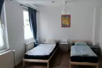 Unsere zentral gelegenen, einzelnstehenden Häuser sind komplett kernsaniert (Fertigstellung 2023) und vollausgestattet. Jedes Haus beinhaltet 2 Wohnungen.Jede Einzelwohnung hat schnelles Internet und vollausgestattete Küche (Spülmaschine, Mikrowelle, Kühlschrank mit Gefrierfach...). Jedes Zimmer hat 2 Einzelbetten (bis 3 nach Bedarf) und einen Fernseher sowie Sitzgelegenheit. Alle Bäder haben Fenster.