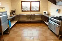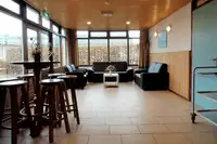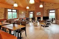 Im Gruppenhaus befindet sich ein schöner, heller Aufenthaltsraum. Es gibt einen offenen Kamin, Fernseher und DVD.