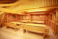 1 Gemeinschaftsraum mit 40 Sitzplätzen als Seminarraum. Die Tische und Stühle können nach Belieben gestellt oder auch weggeräumt werden, müssen aber dann wieder geordnet werden. Zusätzlich mit Heimkino, Sat/TV, Orgel und Billardtisch.