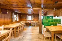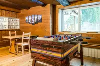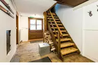 Das urige Erdgeschoss mit seiner holzvertäfelten Stube, einer großen Küche zum Verköstigen aller Gäste und zusätzlichem Aufenthaltsraum bietet Platz für gemeinsame Spieleabende. Auf der Terrasse findet sich genug Platz für eine gemütliche Runde, um den Abend lustig ausklingen zu lassen.