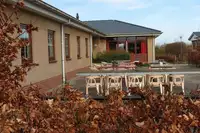 Das Haus verfügt über 32 Schlafplätze in 8 Räumen und ist Behindertengerecht für 6 Personen in 2 Zimmern.Gut ausgestattete Gewerbeküche mit Kaffeemaschine, Gaskocher mit Ofen, Kühlschrank, Gefriertruhe, große, kleine und tiefe Teller, Tassen, Gläser, Dessertschalen, Kochtöpfe, Bratpfannen, Abtropfsieb, Schüsseln, Besteck, Küchenmesser, Dosenöffner, Microwelle, Wasserkocher, Kaffeemaschine und Filtertütern, Geschirrspüler mit Spülmittelautomat.