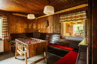 Bettdecken und Kissen vorhanden, Miete von Bettwäsche + Dusch- und Handtüchern möglich, Brötchen-Service möglich, Gruppenräume, Gemeinschaftsküche, Kachelofen/Kamin, Tischkicker, Tischtennisplatte im Außenbereich, Lagerfeuerstelle, kostenfreier Weber E-Grill, ParkplätzeFreizeit