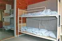 Vier baugleiche Schlafhäuser für je 11 Personen (Etagenbetten):