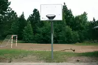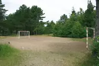 Im Außenbereich: Bolzplatz, Basketballkorb, kleine Kapelle für Gottesdienste, Beachvolleyballplatz und Terrasse.