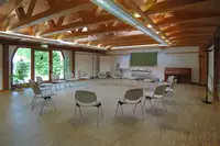 Partykeller, Lesezimmer mit Fernsehgerät, kostenloser Internetzugang per W-LAN, 60 Autoparkplätze, großes ParkgeländeBeamer, Laptop, Flipcharts, Metaplanwände, Moderationskoffer, Videokonferenz-Anlage, Mikrofonanlage, Whiteboards, Fotokopiergerät, Videokamera, Stereoanlage, Klavier, E-Piano, Overheadprojektor, (Yoga-)Matten, Decken
