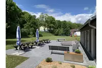 - Ca. 130 qm große Terrasse mit Tischen, Bänken und Sonnenschirmen