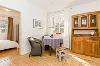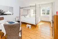 Die Architektur des Vierseithofs formt einen weitläufigen und doch intimen Innenhof, in dem es blüht, zwitschert und grünt. Insgesamt 10 individuell eingerichtete Ferienwohnungen bieten Platz für bis zu 44 Personen.
