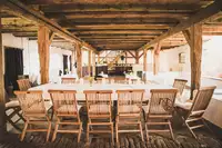 Die alte Backsteinscheune und der Fachwerkstall wurden zu Veranstaltungsräumen umfunktioniert. Ein moderner Gemeinschaftsraum bietet Raum für kleinere Runden.
