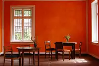 Die Selbstversorgerküche (15 qm) und der Speiseraum (51 qm) befinden sich im Erdgeschoß, beide sind durch eine Schiebetür voneinander getrennt. Direkt neben der Küche liegt der Ausgang zum Garten. Die Ausstattung der Küche ist einfach, es steht Geschirr für 40 Personen zur Verfügung. Im Erdgeschoß des Gutshauses sind mehrere Seminar- und Gruppenräume gelegen - sehr große, helle Räume von mit Südfenstern und Holzdielenfußboden.
