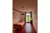 Die Etage Gartenblick befindet sich im Gutshaus im Erdgeschoss und ist barrierearm. Sie ist ca. 250 m² groß und bietet Platz für bis zu 10 Personen mit 5 Schlafzimmern, Bad und Küche.