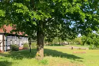 Das große Grundstück kann zum Rumtoben, Fußball spielen, Grillen, Lesen, gemeinsamem Essen usw. genutzt werden. Auch eine Feuerschale steht bereit. Direkt nebenan befinden sich ein großer Spielplatz und ein Floß auf einem kleinen Teich, das gern von Kindern benutzt wird. Der Ortskern ist quasi autofrei, Kinder können sich hier gefahrlos bewegen.Ausflugsziele