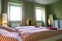 wir haben für 10 Leute (inkl. Familie) den Anbau gebucht, eine sehr gute Einrichtung für Gruppen und gut ausgestattete Küche. Es gibt einen schönen Park in der Nähe. Sehr netter und hilfsbereiter Kontakt.