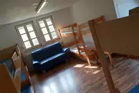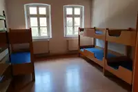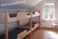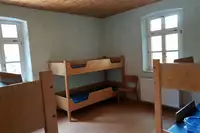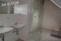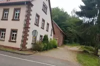 Das Haus liegt wunderbar an einem Bachlauf mit großer Wiese und angrenzendem Wald. Allein die Auto- und Motorradfahrer halten sich leider nicht an die Geschwindigkeitsbegrenzung. Nachts ist es jedoch trotz der Lage an der Hauptstraße sehr ruhig. Durch die vom Ort Oberschlettenbach abgetrennte Lage stört man auch bei ausgiebiger Feierei niemanden. Durch die großzügigen Aufenthaltsräume und den z. T. überdachten Innenhof hatten wir trotz des schlechten Wetters eine gute Zeit! Die Küche bietet alles, was eine große Gruppe benötigt. Die Ausstattung der Schlafräume ist einfach und zweckmäßig. Decken und Kissen sowie Bezüge müssen selbst mitgebracht werden. Zusätzlich zu den Duschräumen sind viele extra Toiletten vorhanden. Die gesamte Abwicklung war einfach, verbindlich und vertrauensvoll. Vielen Dank dafür!
