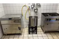 17/19 Küche Raum 2 mit elektr. Kippbratpfanne, Gaskocher, Gasherd mit E-Ofen