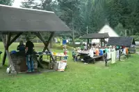 Unweit vom Hochofen können Campingfreunde ihr Zelte aufschlagen und sich in Mitten der Natur erholen. Sanitärräume befinden sich in unmittelbarer Nähe, im Ferienwohnunghaus.