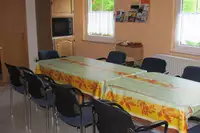Doppel- und Dreibettzimmer, in der 1. Etage (z.Teil mit Etagenbetten). Dort befindet sich auch 1 Aufenthaltsraum mit Küche für 8 Personen und 1 WC-Anlage. Im Parterre befinden sich die Duschanlagen, sowie nochmals mehrere WC-Anlagen und Waschplätze. Die Küche ist ausgestattet mit einem Haushaltsherd, Mikrowelle, Kühlschrank und Backofen.Ausflugsziele