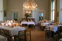 Super! Wir haben dort Hochzeit gefeiert mit 120 Mann. Eine total schöne alte Villa mit riesen Bäumen drum rum. Toller Saal mit Kronleuchtern und sehr sehr leckeres Essen. Genug Betten für die von weither angereisten Gäste. Die Köchin war zunächst etwas mürrisch und ist dann aber aufgetaut.