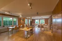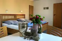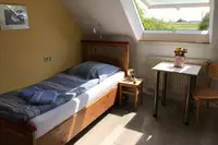 Einzel- und Doppelzimmer mit der Möglichkeit zur Aufbettung (max. drei Personen). Zimmer mit gemeinsamer DU/WC ideal als Familienkombination (Bad fungiert als Verbindungszimmer). Das Haus bietet einen Gruppenraum, Aufenthaltsraum mit TV und Büchern, bestuhlte Terrasse, großer Garten. Eine Gästeküche mit Mikrowelle zur Zubereitung von kleinen Snacks, Kaffee/ Tee o.ä. mit Kühlschrank ist ebenfalls nutzbar.Freizeit