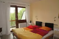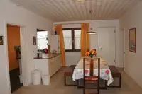 Wir waren zu 11 Personen (13-80 Jahre) zu einer Familienfeier hier und hatten das ganze Haus gemietet. Es ist alles groß und hell. Die Küche oben ist ausgestattet mit allem! Der Blick in die Landschaft ist wunderschön. Nach ein paar Schritten ist man im Wald. Wir hatten so gutes Wetter, dass wir die Angebote Tischtennis, Sauna u.a. gar nicht nutzen konnten. Wir haben uns sehr wohl gefühlt und können es für Familien und Gruppen nur empfehlen! Frau Rodewald ist sehr nett und hilfsbereit. Familie Schwarzer