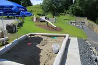 13/14 Der neu angelegte Spielplatz mit Sitzmöglichkeiten für groß und klein.