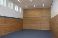 14/14 Die Turnhalle bietet viel Platz zum Spielen und Toben mit Matten, Fußballtore, Volleyballnetz, Basketballkörbe, Bälle Kicker, TT-Platte
