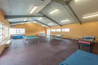 Tischtennis, Kicker, Billard, Basketball, Grillplatz, Boulebahn, Außenschach. Schwimmhalle und Sportanlagen neben der Jugendherberge.Bemerkungen