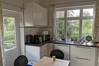Durch die Küchentür in den Garten ist der Grill und Außenbereich bequem erreichbar.