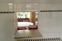 Schlafzimmer mit Doppelbett, Gäste -WC.