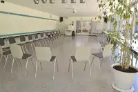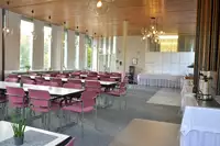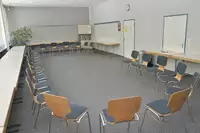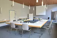 Sporthalle, Hausbar, Cafeteria, Aufenthaltsraum. Fotokopiergerät, Tagungsmedien, Beamer, W-Lan, Fernseher und DVD-Player, Spielmaterialien, Tischtennisplatte, Fußballkicker, 50 Autoparkplätze, drei Pilgerzimmer (max. 8 Personen)Freizeit