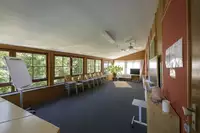 Seminarräume: Tanz- und Bewegungsraum, Spiegel, Schwingboden: 78 qm, Getäfelter Raum: 40qm, Kreativraum: 38 qm, Kellerseminarraum: 41qm zur variablen Nutzung mit Holzfußboden