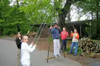 Rund ums Haus:Terrasse mit Backhaus Spielgeräte mit Seilbahn, Wippe, Schaukel und Klettergerüst Lagerfeuer und Grill, Volleyball, Basketball, Fußball Mountainbike (MTB-Ausleihe im Haus), Geocaching