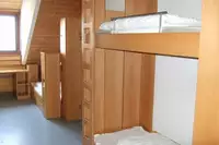 In unserer Beherbergungseinheit können Gruppen in Mehrbettzimmern übernachten. In erster Linie dient sie der Förderung der Jugend in den Bereichen Natur und Kultur, Umweltbildung und Museumspädagogik. Besonders beliebt ist sie bei Schulklassen.Das Raumangebot: 2 Mehrbettzimmer mit je 10 Betten, je 1 Mehrbettzimmer mit 8 und 6 Betten, Gruppenwaschräume, 2 Doppelzimmer mit Dusche/WC und ein großer Speisesaal/Aufenthaltsraum.