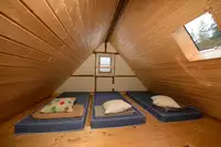 1 Schlafraum als Matratzenlager im Dachboden mit 4 Matratzen.