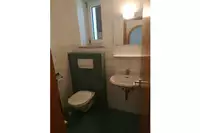 Das helle Wohnzimmer bietet genügend Sitzmöglichkeiten und einen Fernseher. In der voll ausgestatteten Essküche gibt es alles was man so zum Kochen braucht. Ein Hauswirtschaftsraum mit Waschmaschine, Kühlgefrierkombi und genügend Platz für alle Vorräte ist ebenso vorhanden.