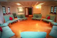 60 m² Tagungsraum mit dreiseitiger Glasfront und Weitblick auf das Landschaftsschutzgebiet, Parkettboden, Internetzugang, W-LAN und Stereoanlage.Matten, Sessel, Stühle, Meditationskissen, Tagungsmedien, Pinnwände, Flipcharts und Beamer können gegen eine Gebühr dazugebucht werden.