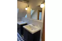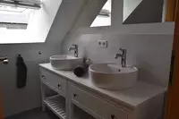 8/16 Bad mit 2 Waschbecken, Dusche, Waschmaschine und Toilette im Erdgeschoss
