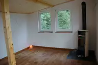 Auf einer großen Lichtung mitten im Thüringer Wald, nahe Oberhof u. nahe des Rennsteigs, steht neben 3 anderen Häuschen ein gemütliches Haus mit großer Terrasse und großem Grundstück. Es bietet Platz für 9 Personen in 3 Schlafzimmern (Stockbetten), hat eine voll eingerichtete Küche, ein kleines Badezimmer, ein Wohn-Ess-Zimmer mit Kaminofen und großer Terrasse.Freizeit