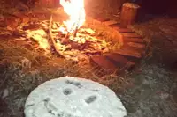 Feuerstelle im Garten. In einem Extra-Gebäude steht ein zusätzlicher Gruppenraum (ca 25 m²) zur Verfügung (mit Kaminofen beheizbar). (muss zusätzlich gebucht werden, Miete 35,00 €)Ausflugsziele