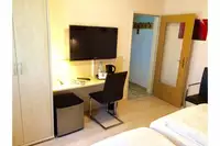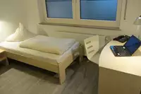 Einzelzimmer, Doppelzimmer, Appartements & Ferienwohnung mit Küchen für 1 bis 10 Personen. Alle Zimmer mit Dusche/WC, LED-LCD-TV, Kühlschrank, Wasserkocher, inkl. Handtüchern, Bettwäsche und Reinigung. Ferienhaus für 12 Personen mit 6 Schlafzimmern, 4 Badezimmern, Küchen, Terrasse.Performantes Internet über Wlan in allen Räumen und Zimmern. Gruppenraum mit Küchenzeile und Gästebad. Sonnenterrasse mit Grillmöglichkeit und 10.000 m² großem Gartengrundstück. Kostenlose Parkplätze, Fahrradgarage, Gewerberaum mit Waschmaschinen und Trocknern.