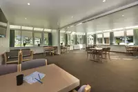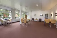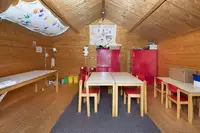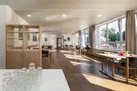 Das Haus und sein Inventar sind veraltet. Ambiente der 70ger Jahre. Duschen wechseln die Temperatur von eiskalt zu heiss, fördern nur wenig Wasser. Kein Föhn, kann aber entliehen werden. Flure recht dunkel. Teppichboden im Gruppenraum alt. Buffetauswahl auf Basics eingeschränkt, aber frisches Rohgemüse am Abend. Körner- und normale Brötchen wurden morgens frisch angeboten. Hauswirtin sehr nett und hilfsbereit, Personal freundlich.